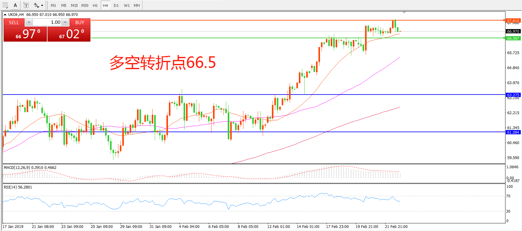 交易策略:在66.50之上看涨,目标67.50   70.00