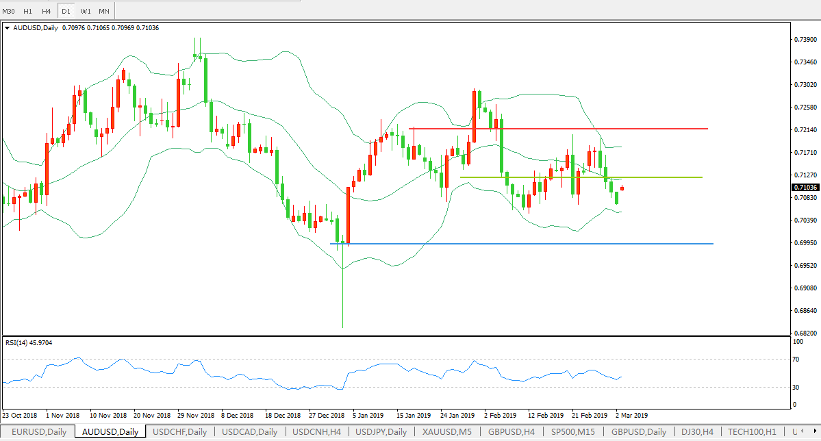 交易策略:在0.7145之下,看跌,目标价位为0.7045,然后为0.6990。