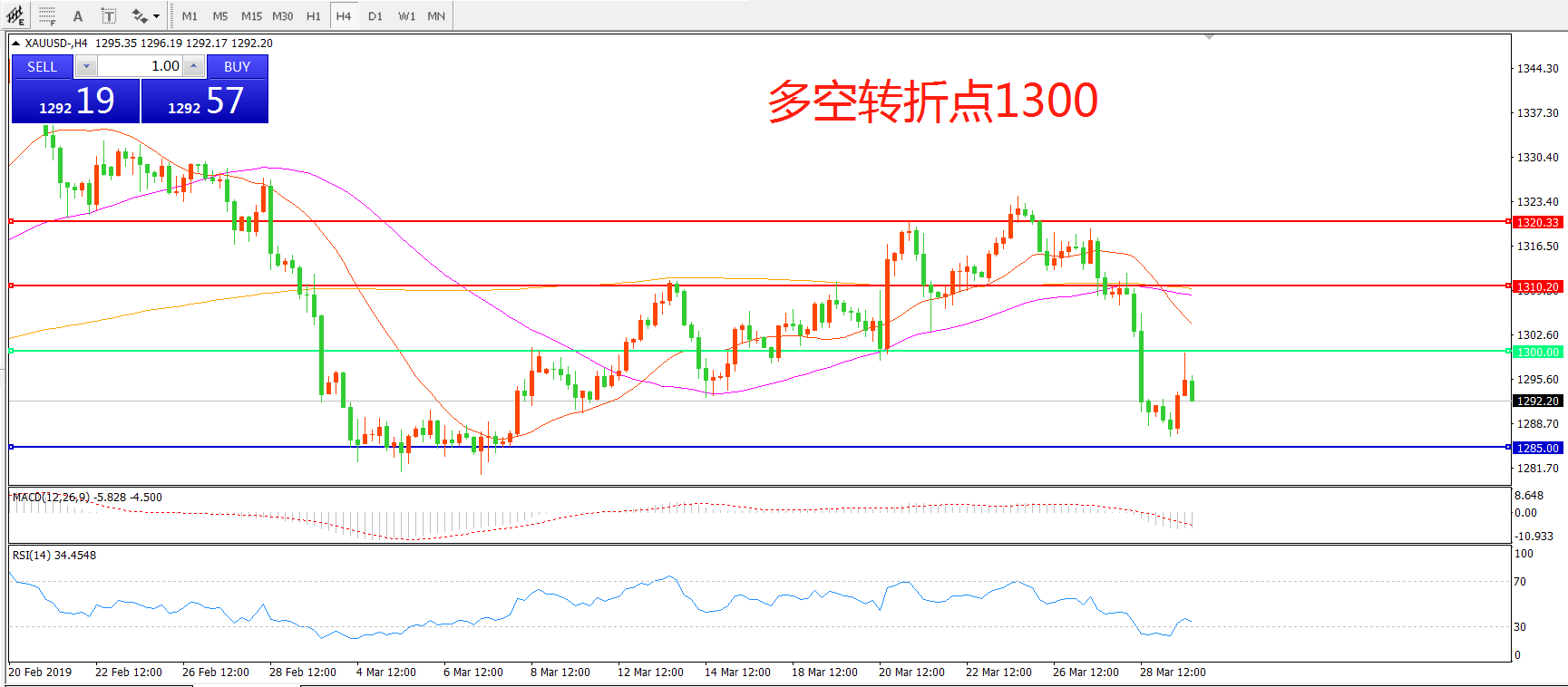交易策略:在1300.00之下看跌,目标1285.00   1270.00