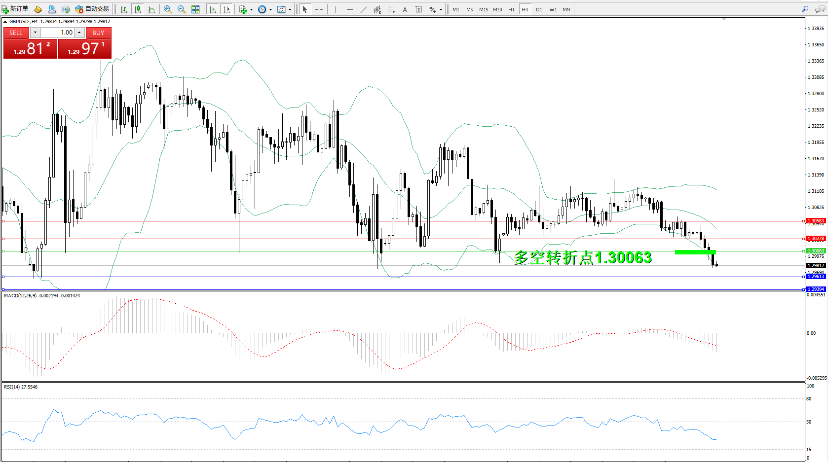 交易策略:1.30063下方看跌,目标1.296131.29394