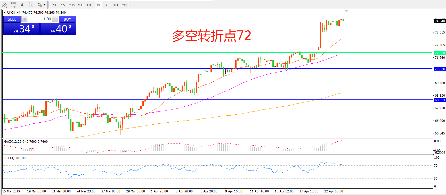 交易策略:在72.00之上看涨,目标75.50    80.00