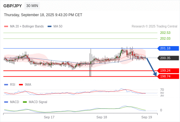 英镑/日元 当日内: 看跌,在 201.18 之下。