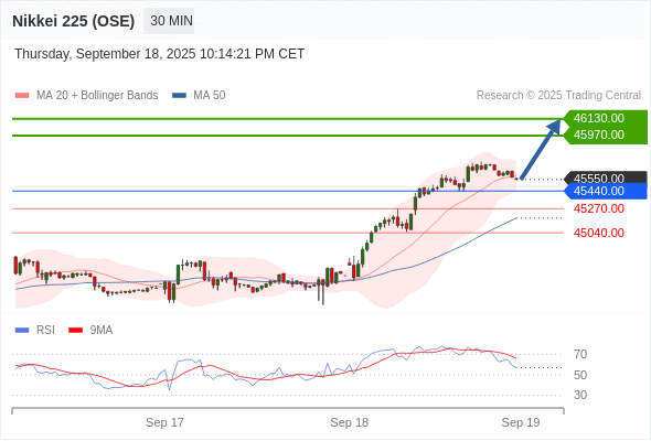 在 45440.00 之上,看涨,目标价位为 45970.00 ,然后为 46130.00 。