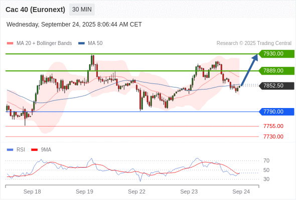 在 7790.00 之上,看涨,目标价位为 7889.00 ,然后为 7930.00 。
