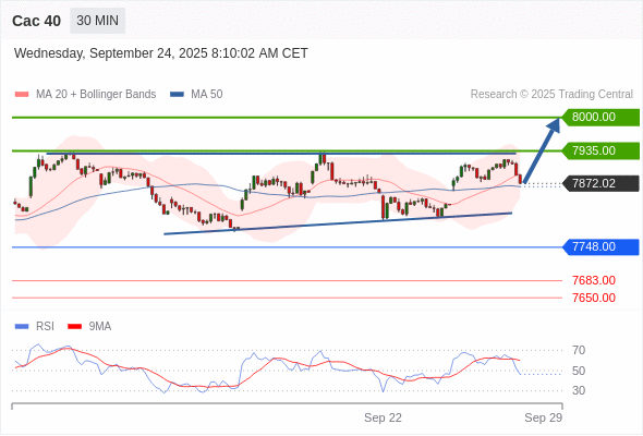 在 7748.00 之上,看涨,目标价位为 7935.00 ,然后为 8000.00 。