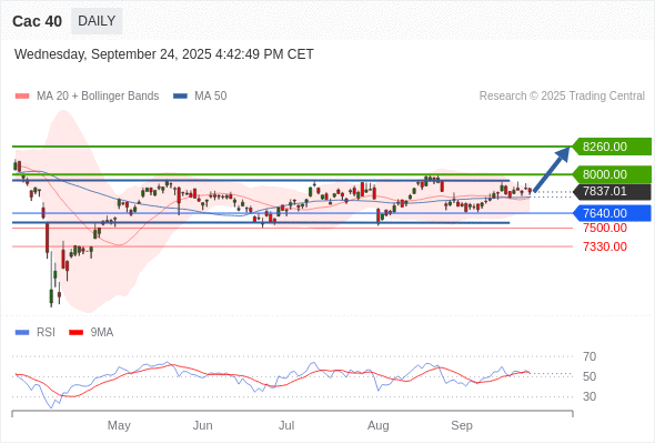 Cac 40 短线: 期待8000.00。