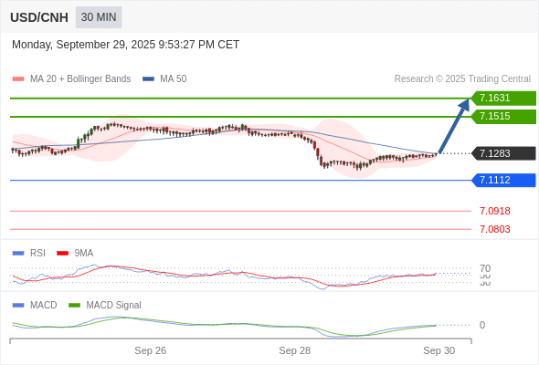 备选策略: 如跌破 7.1112 ,USD/CNH 目标方向定在 7.0918 和 7.0803 。