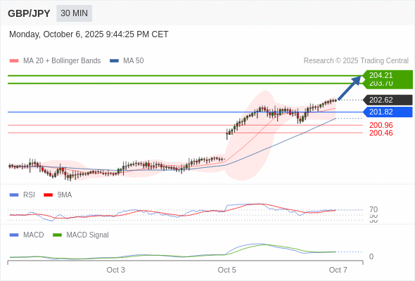 英镑/日元 当日内: 看涨,当 201.82 为支撑位。
