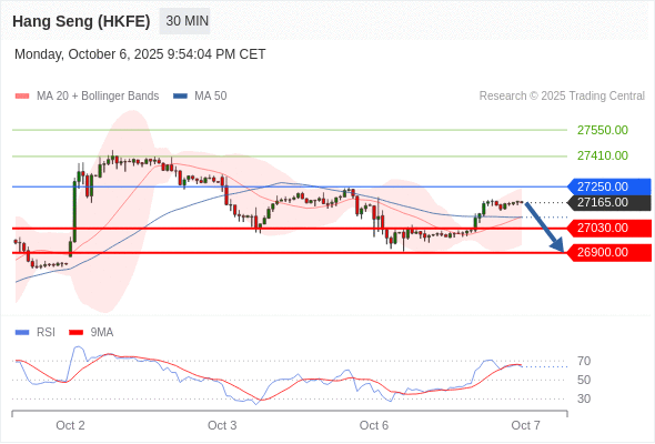 香港恒生指数期货 当日内: 短期关键阻力位在27250.00。