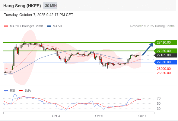 在 27030.00 之上,看涨,目标价位为 27250.00 ,然后为 27410.00 。
