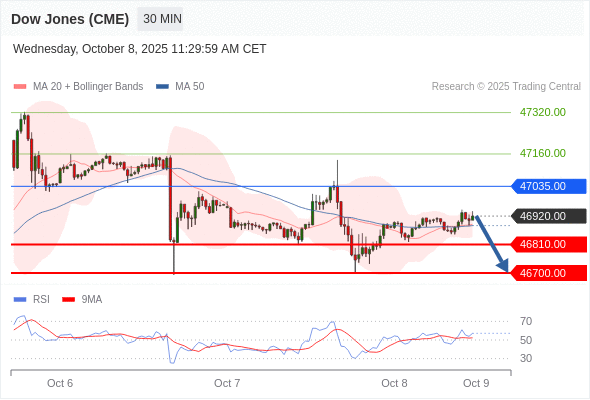 在 47035.00 之下,看跌,目标价位为 46810.00 ,然后为 46700.00 。