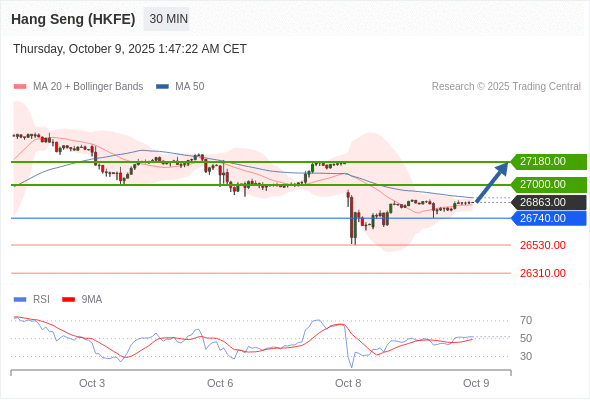 香港恒生指数期货 当日内: 超短线(当日内)支撑位在26740.00附近。