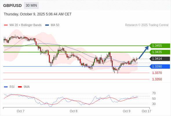 在 1.3390 之上,看涨,目标价位为 1.3435 ,然后为 1.3455 。