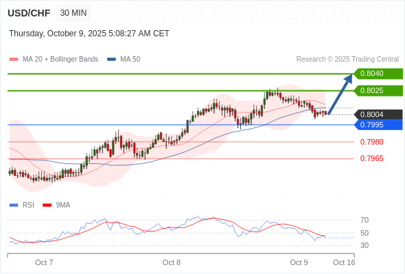 在 0.7995 之上,看涨,目标价位为 0.8025 ,然后为 0.8040 。