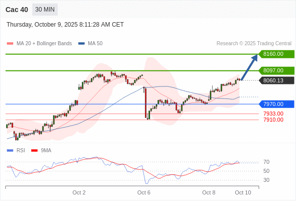 在 7970.00 之上,看涨,目标价位为 8097.00 ,然后为 8160.00 。