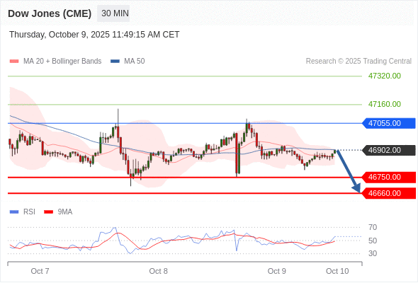 交易策略: 在 47055.00 之下,看跌,目标价位为 46750.00 ,然后为 46660.00 。