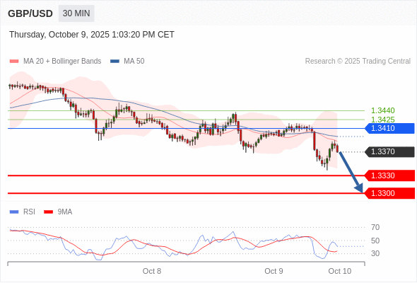 在 1.3410 之下,看跌,目标价位为 1.3330 ,然后为 1.3300 。