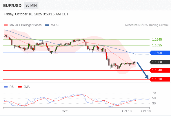 交易策略: 在 1.1600 之下,看跌,目标价位为 1.1540 ,然后为 1.1510 。