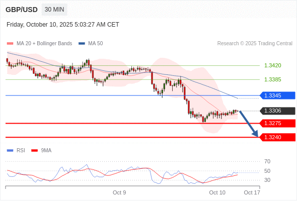 在 1.3345 之下,看跌,目标价位为 1.3275 ,然后为 1.3240 。