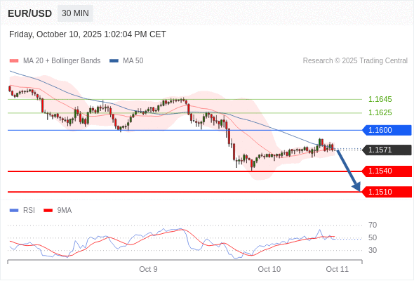 交易策略: 在 1.1600 之下,看跌,目标价位为 1.1540 ,然后为 1.1510 。