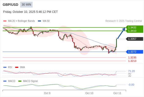 英镑/美元 当日内 : 看涨,当 1.3272 未被跌破。