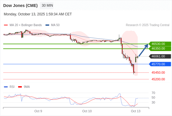在 45770.00 之上,看涨,目标价位为 46350.00 ,然后为 46530.00 。