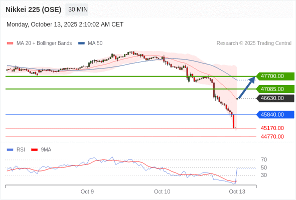 日经225股指期货 (OSE) 当日内: 目标位为47700.00。