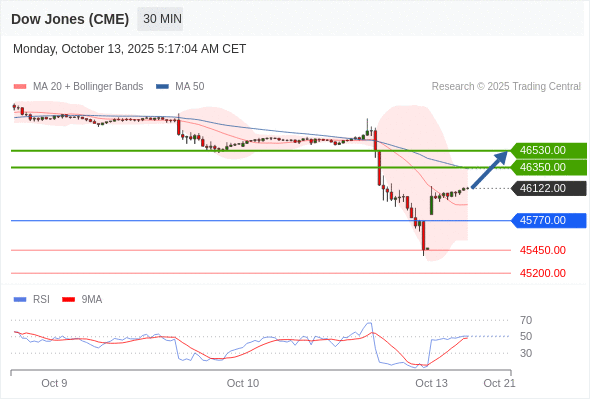 在 45770.00 之上,看涨,目标价位为 46350.00 ,然后为 46530.00 。