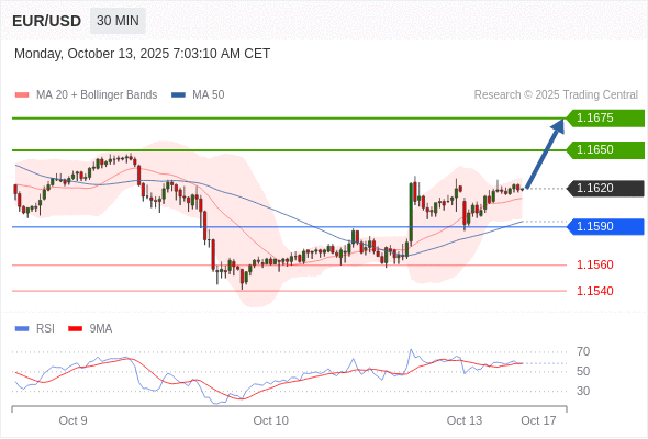 在 1.1590 之上,看涨,目标价位为 1.1650 ,然后为 1.1675 。