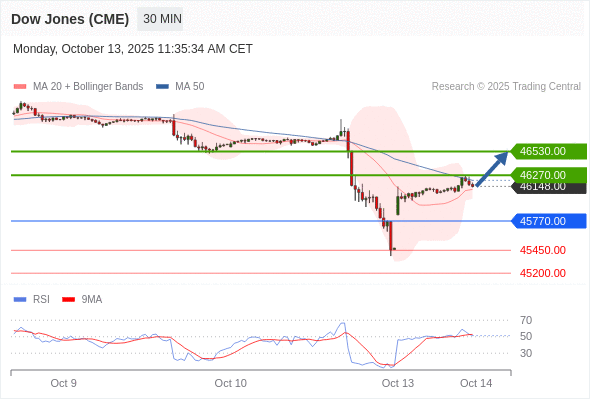 在 45770.00 之上,看涨,目标价位为 46270.00 ,然后为 46530.00 。
