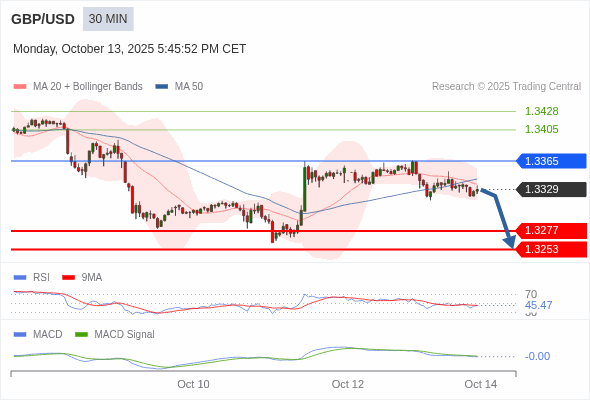 英镑/美元 当日内 : 看跌,在 1.3365 之下。