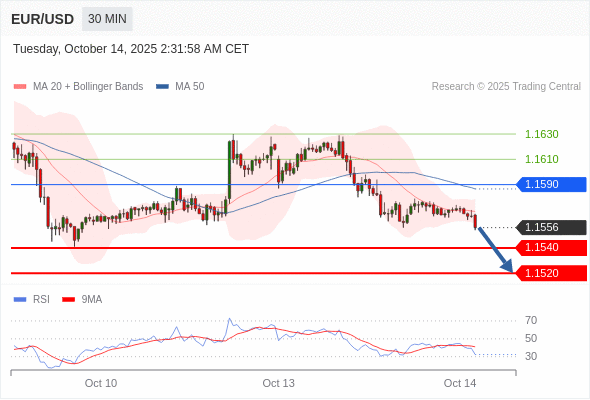 在 1.1590 之下,看跌,目标价位为 1.1540 ,然后为 1.1520 。