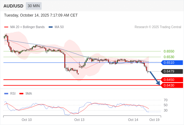 在 0.6510 之下,看跌,目标价位为 0.6450 ,然后为 0.6430 。