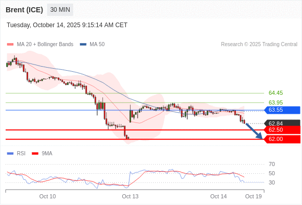在 63.55 之下,看跌,目标价位为 62.50 ,然后为 62.00 。