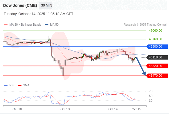 在 46500.00 之下,看跌,目标价位为 45820.00 ,然后为 45470.00 。