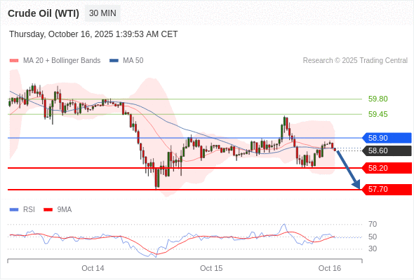 在 58.90 之下,看跌,目标价位为 58.20 ,然后为 57.70 。