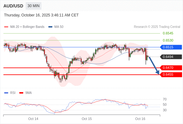 在 0.6515 之下,看跌,目标价位为 0.6470 ,然后为 0.6455 。