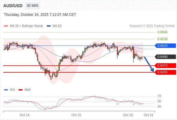 在 0.6515 之下,看跌,目标价位为 0.6470 ,然后为 0.6455 。