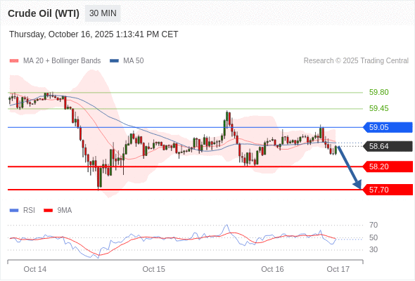 交易策略: 在 59.05 之下,看跌,目标价位为 58.20 ,然后为 57.70 。