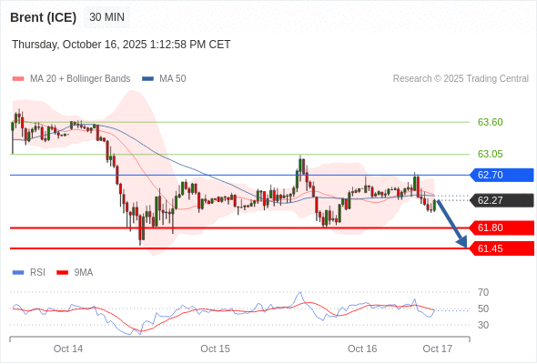 在 62.65 之下,看跌,目标价位为 61.80 ,然后为 61.45 。