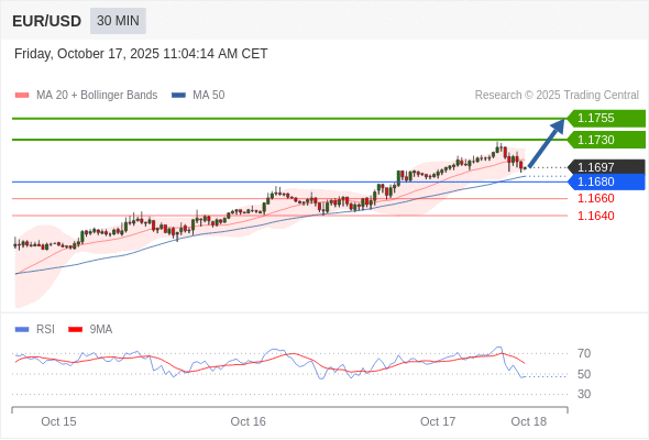 在 1.1680 之上,看涨,目标价位为 1.1730 ,然后为 1.1755 。