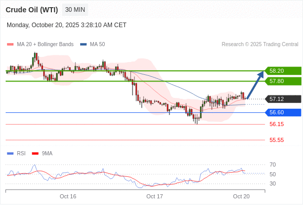 在 56.60 之上,看涨,目标价位为 57.80 ,然后为 58.20 。