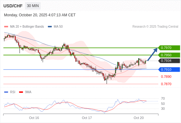 在 0.7910 之上,看涨,目标价位为 0.7950 ,然后为 0.7970 。