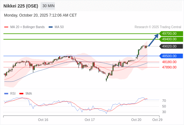 交易策略: 在 48500.00 之上,看涨,目标价位为 49400.00 ,然后为 49700.00 。