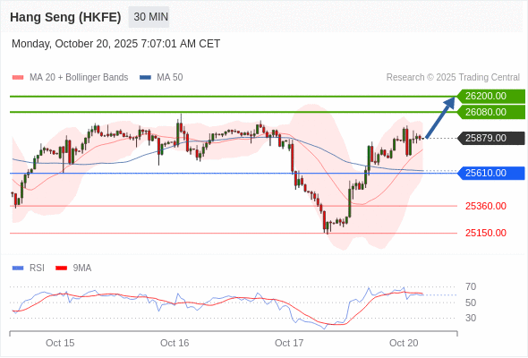 交易策略: 在 25610.00 之上,看涨,目标价位为 26080.00 ,然后为 26200.00 。