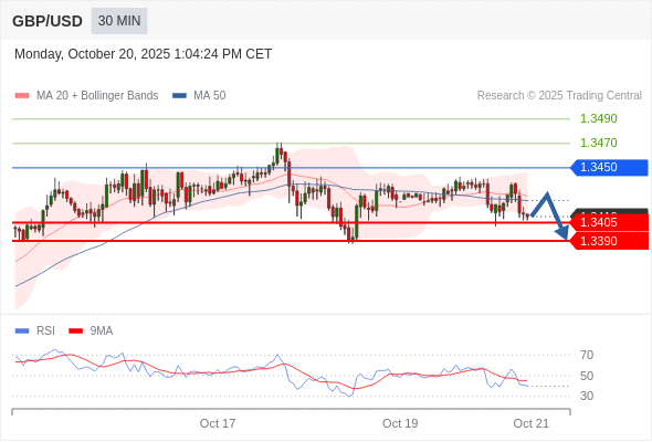 在 1.3450 之下,看跌,目标价位为 1.3405 ,然后为 1.3390 。