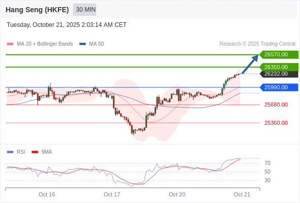 在 25990.00 之上,看涨,目标价位为 26350.00 ,然后为 26570.00 。