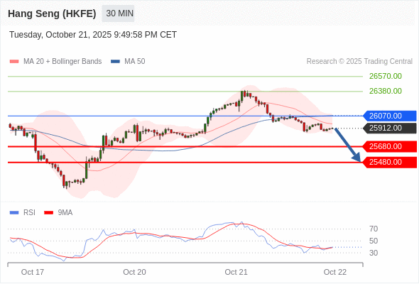 在 26070.00 之下,看跌,目标价位为 25680.00 ,然后为 25480.00 。