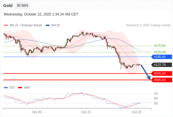 在 4185.00 之下,看跌,目标价位为 4055.00 ,然后为 4005.00 。