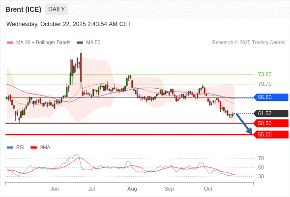 布伦特原油 (ICE) (Z5) 短线: 存在压力。